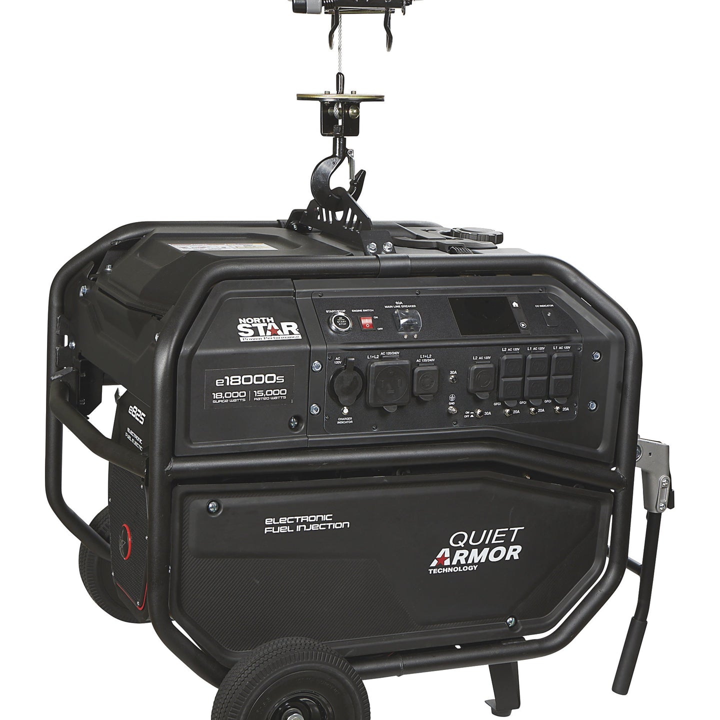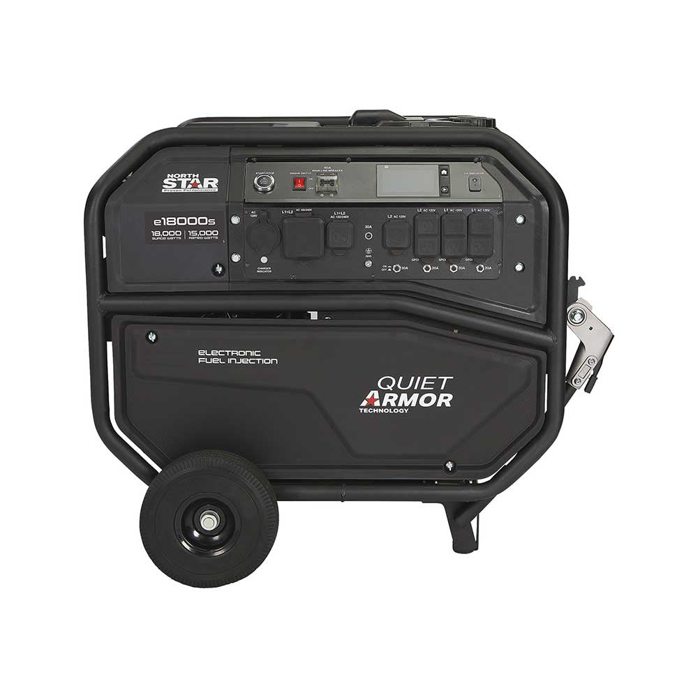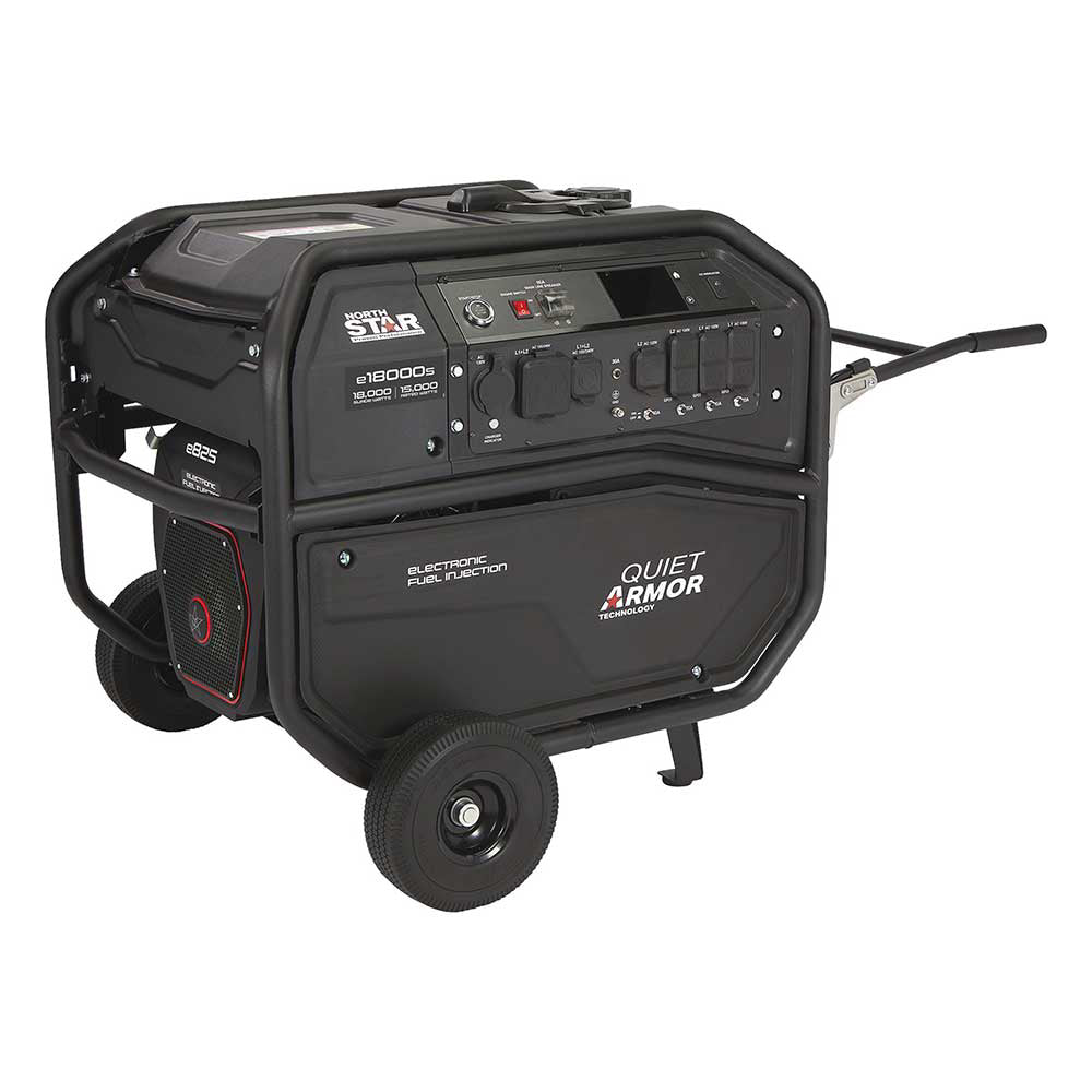 The NorthStar e18000s commercial-grade EFI portable generator with electric start is the ultimate, high-powered, high-performance power solution for demanding job sites. Powered by a NorthStar e825 OHV EFI engine, this ruggedly constructed generator is built for extreme durability and safety.