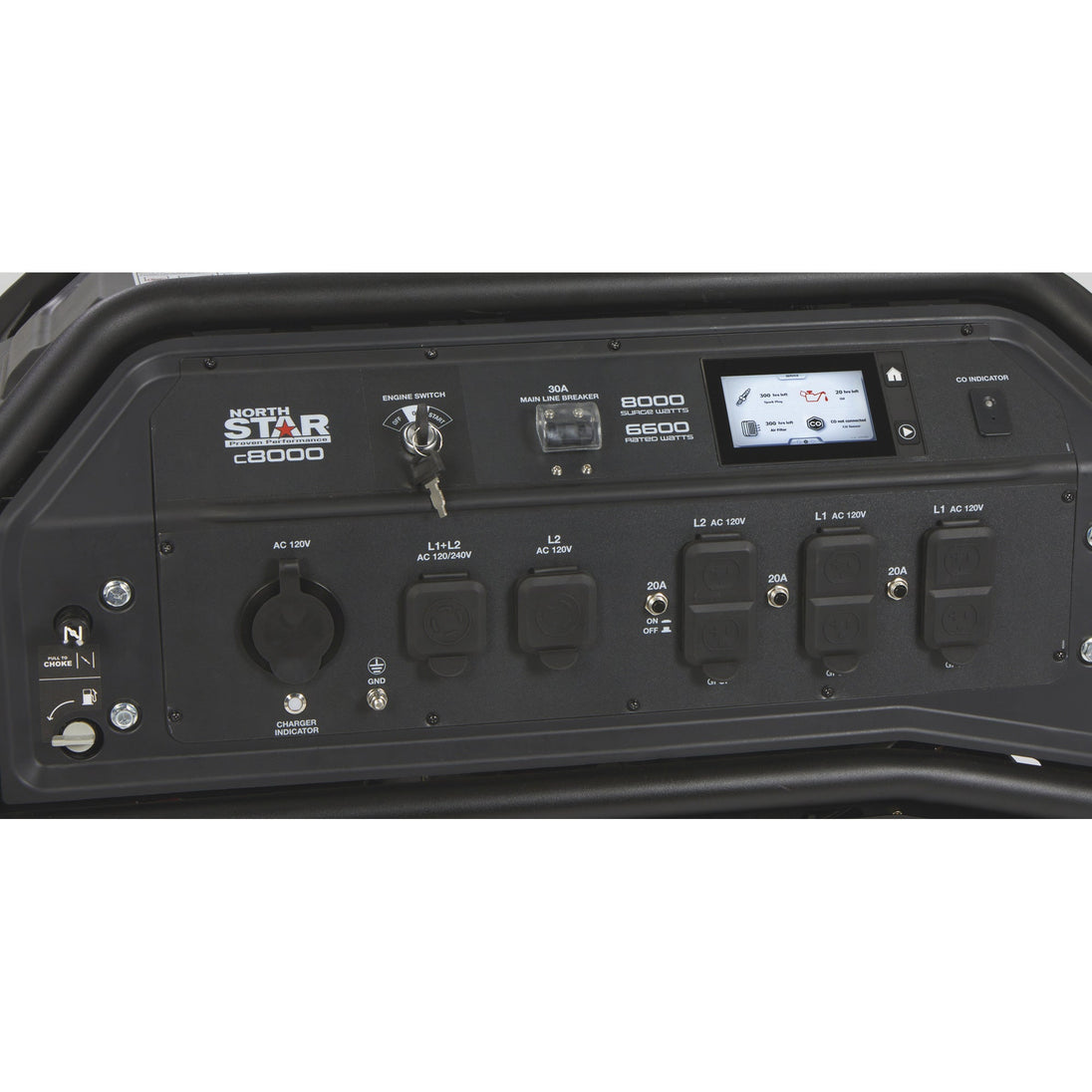 It comes with a built-in battery charger/maintainer for easy charging of onboard electric start battery.  Carbon monoxide detection and automatic shutdown ensure safe operation. A cutting-edge, multi-function LCD display monitors all generator functions in one convenient place.
